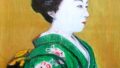 花街では節分の頃,お化けと言って,なにか変わった趣向をこらしたテ-マで大抵何人かで組んで,変装したりして,お座敷を廻る行事がある。この舞妓さんは,お染め・久松のコンビを組んだままのどちらかの髪型のままと思われる。サインのように一まめさんといって,東京から手紙を出して志願したという。それにしても早く祇園言葉のアクセントまでよく習得するものだと感心する。