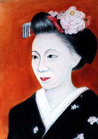 牡丹飾 ギャラリー 2026.02.06 彫りの深い面立ちの舞妓さんであった。昨年の年頭初春のテレビでは、お茶を一服点てる間に舞い納めるという雅な舞を披露した。目下、笛に精進中で、一見(?)難解な独特の笛の譜面と特訓中。