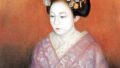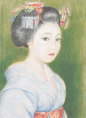 佳つ乃さんという。その昔あの話題の渦中に巻き込まれない時であった。祇園一の別嬪さんどっせと言って紹介された。ご覧のように,まだ出たてそうそうのようである。なにもしらない私は,無心に描いただけであるが,有名にならないときでよかった。この全身座像「水仙」が円光寺さんで飾ってもらっている。この絵は春は朧を意識して,ふんわりとした雰囲気を出した。